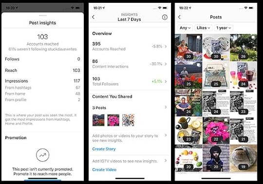 This post is mainly aimed at those people who use Instagram to promote a business or a product. Whether it is a painting, a piece of furniture, or in my case a book, it's all relevant