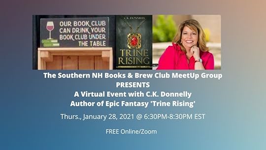 The Southern NH Books & Brews Club invites you for a wonderful evening with Fantasy author C.K. Donnelly. She will discuss her debut novel, TRINE RISING, and all things fantasy.