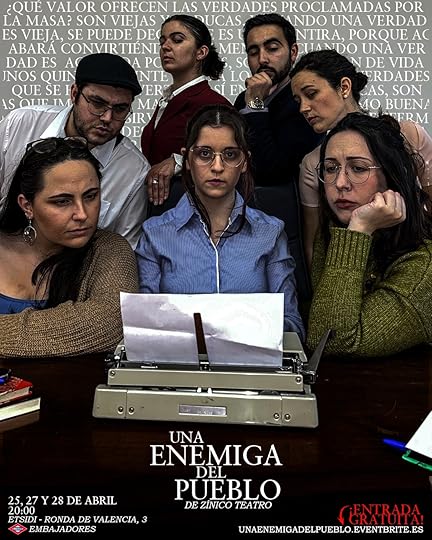 Buenas.Hace tiempo que no nos leemos, pero es la hora de volver. Y de contaros cositas, como que los días 25, 27 y 28 de Abril estaré representando Una enemiga del pueblo en el salón de actos de la ETSIDI en Ronda de Valencia 3 (Madrid), una obra maravillosa de la cual están las entradas a la venta: UnaEnemigaDelPueblo.eventbrite.es