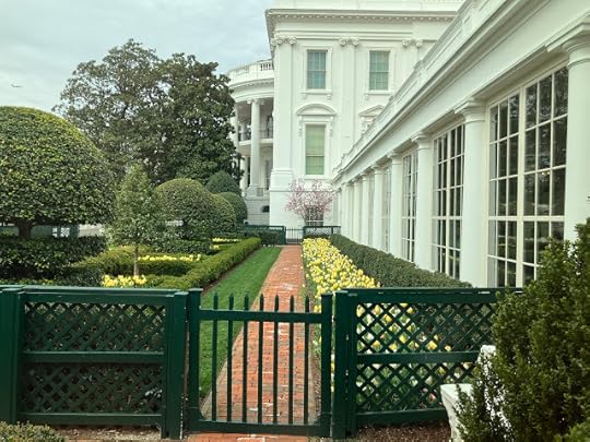 The colonnade at right attached the East Wing to the main White House structure, center. The grass and bushes at left were part of the Jacqueline Kennedy Garden, now also gone.Karen and I vacationed in Washington, DC in March 2024. She had been there before but I never had, and I joked that I'd better see it before MAGA Republicans tore it all down.