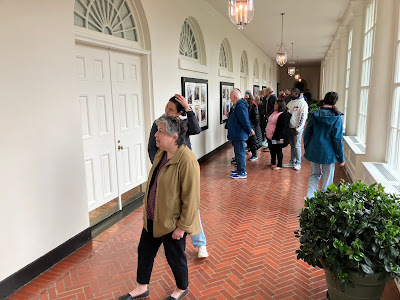 Karen and other visitors inside the colonnade leading to the White House. This was a visitor's introduction to the history of the place, setting the context for the more structured self-guided tour to follow.I took a few photos; wish I'd taken more, but at the time I had no inkling it would all be gone a year and a half later, illegally bulldozed to satisfy a stupid president's petty ego. Trump has committed worse crimes, but this one hurts.