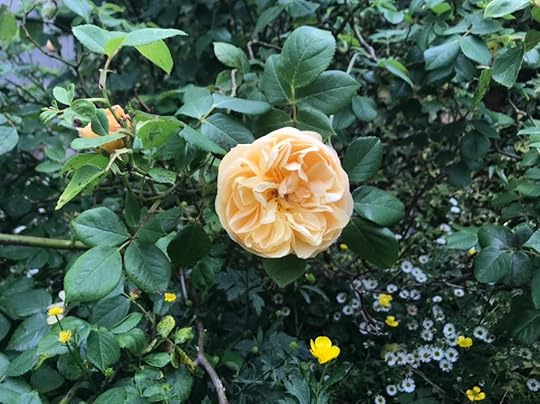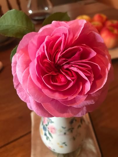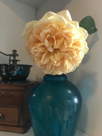 Roald Dahl rose in a blue bottleDavid Austin roses keep their fragrance for weeks even when they are cut flowers. It’s amazing! I love any flowers but especially fancy flowers having fragrance.