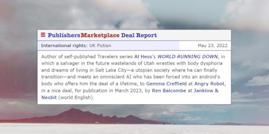 But “over” never came. In May 2021 I signed with agent Ren Balcombe. You can read about my querying journey and how I got my agent here. We went out on sub in late July. Adult SFF doesn’t have a vast list of houses and imprints to choose from. We sent WORLD RUNNING DOWN out to thirteen publishers in the US and UK. There wasn’t much to do after that but wait and keep writing the next thing.