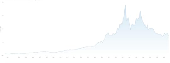 Nick Train runs a number of funds and this is probably not entirely representative, but I used the Lindsell Train Investment Trust to illustrate the ups and downs of running a concentrated portfolio. The share price peaked in mid-2019 at 1875p then had another rally but has been dismal since, as can be seen in the chart: