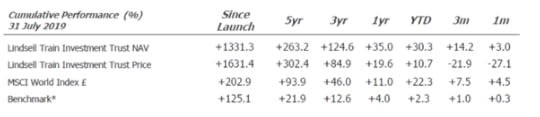 Nick Train is a seriously thoughtful growth investor with a highly impressive 40 year track record. He invests in eternal franchises and takes a 20 year view. He says his ideal holding period is forever. He was early to recognise that high quality consumer brands were great investments and accordingly his funds significantly outperformed their benchmarks. More recently, the last five years have been less kind and performance has lagged somewhat with weak performance from some of his biggest holdings, notably Diageo, which is down almost 50% from its peak, in a market which has gone up.