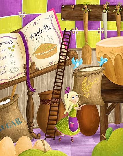 This week, i have decided requires a giant apple pie...It has been such a busy month with work at the moment that all i want to do this evening is curl up and eat some warm apple pie and ice cream, what better way todo this than to eat a gigantic pie, but after thinking about it for a little while if i did indeed want a REALLY BIG PIE then it would require a really big kitchen, so here we have a girl working away in a giant kitchen in order to bake me a GIANT apple pie. If only it was real...