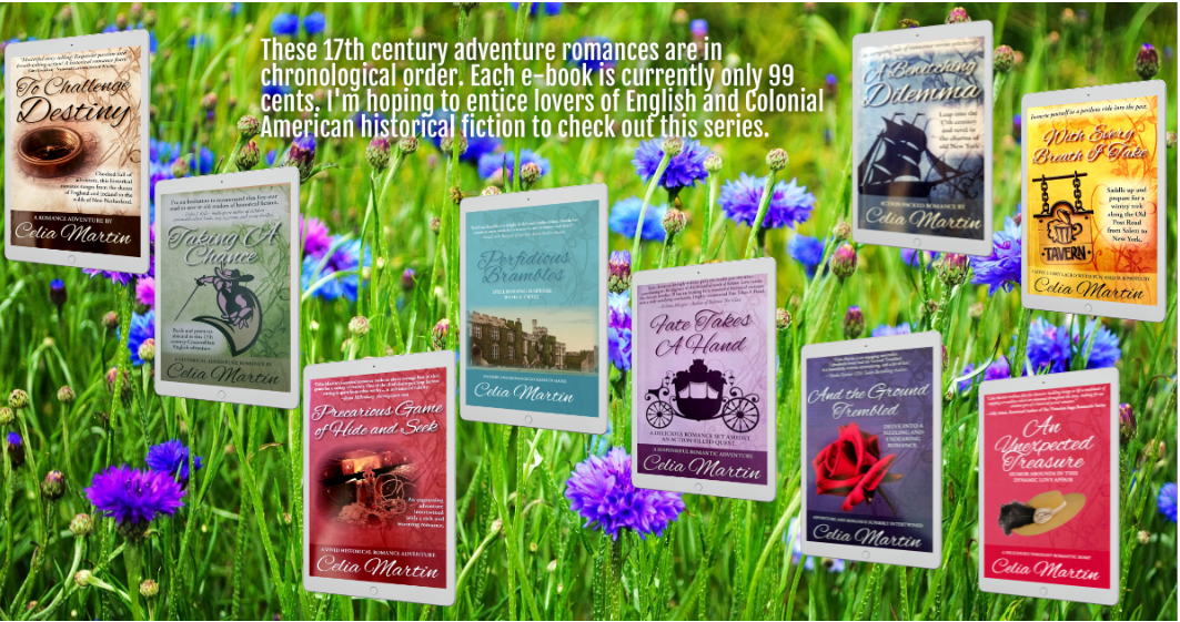 In the hopes of introducing more readers to the historical delights and intrigues of 17th century England and Colonial America, my e-books will be 99 cents for the foreseeable future.
