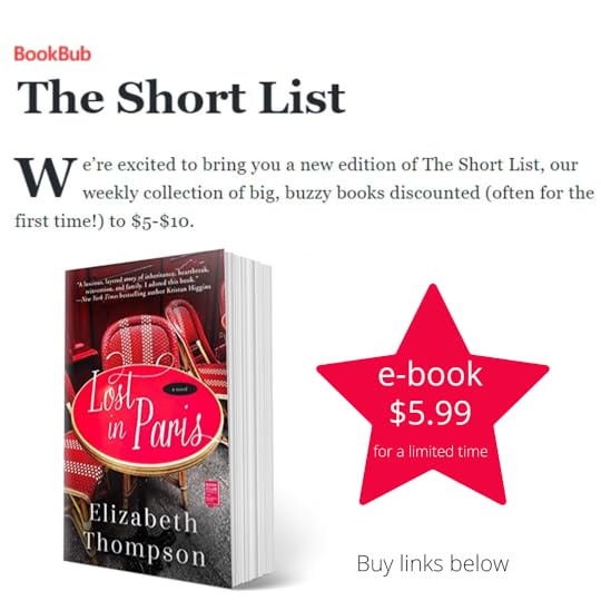 Lost in Paris is spotlighted on BookBub’s brand new feature, The Short List, which is a “weekly collection of big, buzzy books discounted (often for the first time!).”