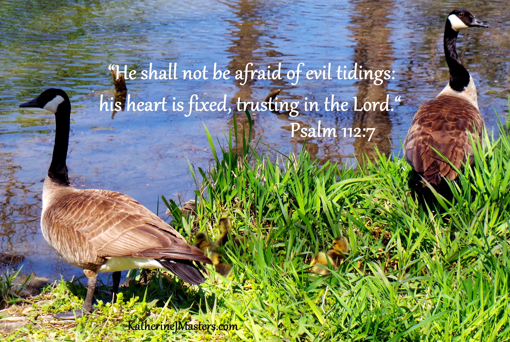 "He shall not be afraid of evil tidings: his heart is fixed, trusting in the Lord." Psalm 112:7