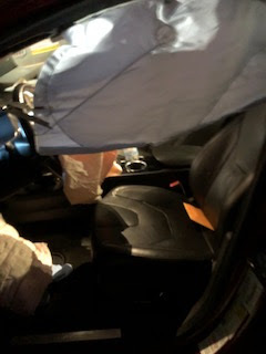 Checking my kids over, touching them, seeing them, was a relief... and it also set in as to what had happened, especially when I saw the inside of the car with the blown airbags. While waiting for the tow truck, they kept busy trying to figure out the accident pattern, looked for vehicle parts and tried to figure out the accident path. The officer had left by then and it was really dark, other than the flashing lights on my sons' trucks and flashlights. I called my husband on the phone and updated him as we found out more... and on the physical condition of our kids. Son kept saying he was fine, but looked awful... plan was to evaluate in better light... since he was able to function.