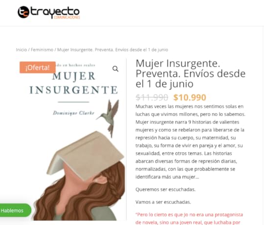 Mujer Insurgente en Trayecto Bookstore: https://trayectobookstore.cl/producto/mujer-insurgente-dominique-clarke/