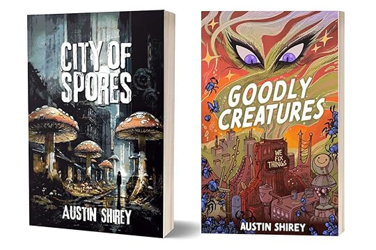 I’d also love it if you considered checking out my weird fantasy noir novella, City of Spores, or my illustrated sci-fi thriller chapbook, Goodly Creatures.