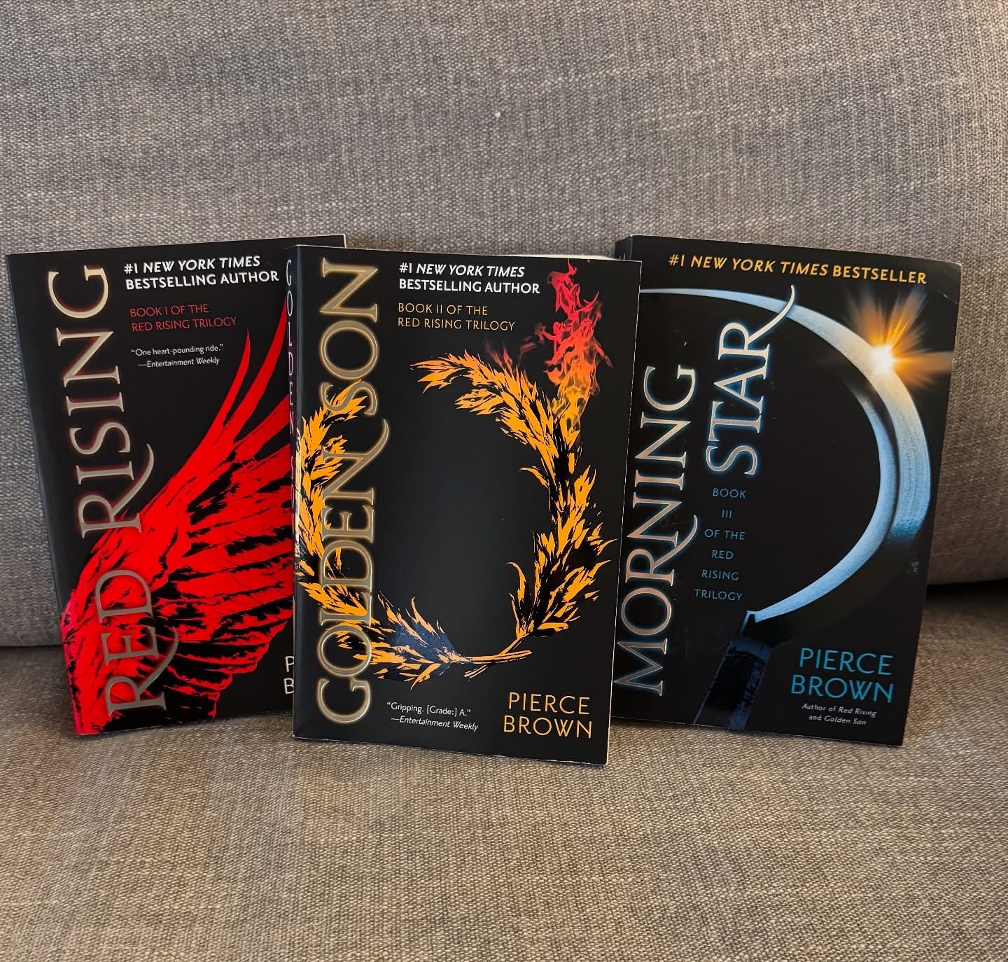 So what have I been reading? What books have I been escaping into? Well, my wife and I just finished reading the Red Rising trilogy by Pierce Brown (Red Rising; Golden Son; Morning Star), and we absolutely loved it.