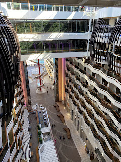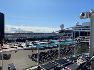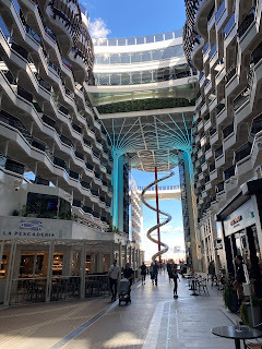 First impressions were good. Embarkation took less than ten minutes and the muster drill was a breeze. It’s a beautiful looking brand-new ship. We ate lunch in the buffet that first day with a stunning view over the World Promenade. There's a really big pool deck (and we never had a problem getting a sun bed) and lots of big hot tubs and additional pools including an indoor one. There was virtually 24/7 pizza (including for breakfast) and it was excellent pizza as you’d expect from an Italian cruise line.