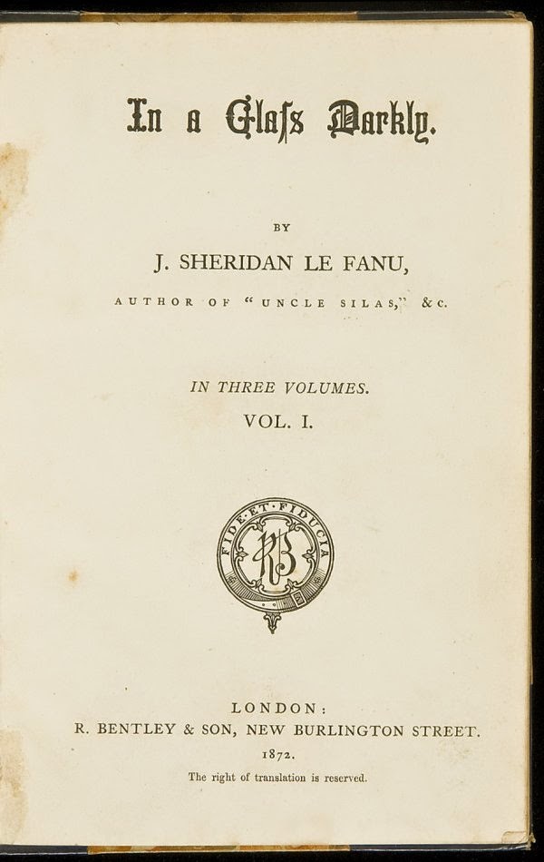 This is my favourite time of year, connected inextricably with ghost stories. Revisiting Sheridan Le Fanu's "In a Glass Darkly", I came across this disquieting paragraph...