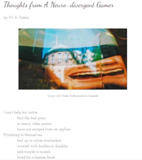 Anyway, I could write forever about mental health and video games but long story short, this poem is one exploration of my thoughts and experiences. You can read my pieces and many others at these links: https://www.redrosethorns.com/post/a-canterbury-tale-from-my-bedroom & https://www.redrosethorns.com/post/thoughts-from-a-neuro-divergent-gamer