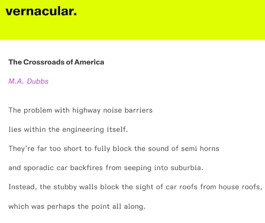 The Spring 2025 edition of Vernacular Journal is live and includes my poem “The Crossroads of America” in it! Vernacular Journal defines its vision as: