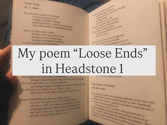 Today was mail day and I received my contributor copies of Headstone 1, a zine focused on death, grief, and loss of various kinds. My free verse poem “Loose Ends” was included in this publication and it explores my journey of wrapping up the loose ends after my uncle’s suicide last summer. It’s a memory of going through his things but also examining the distant relationship we had and the complicated feelings I feel after his unexpected death. I wrote a lot of poems last year for solace and reflection and this is the first of this set to be published. Thank you Headstone Zine for including me!