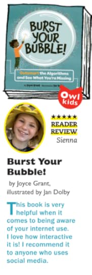 Thank you to Sienna, a kid-reviewer who gave Burst Your Bubble! five stars in a recent review in OWL magazine. (Disclosure: Burst Your Bubble! was published by Owlkids Books, which also publishes OWL magazine.)