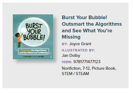 “Burst Your Bubble! unscrambles a technical topic – online algorithms – and makes it easy for young readers to grasp. (It) stitches together salient points in an upbeat, easily understood manner. Reliable and comprehensive, this essential resource will help readers understand and control the influence of algorithms, tweak online behaviours, and grow into better people–keenly important in this age of misinformation and divisive messaging.”