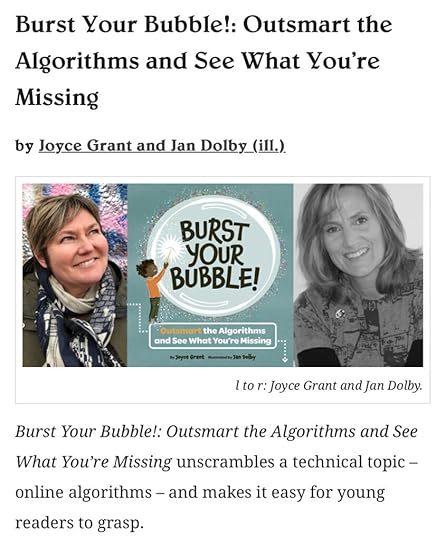 That is why I was so thrilled that she has reviewed “Burst Your Bubble!,” giving it praise for presenting information about algorithms in a way that kids can understand, but also for advising readers “how to take control back from those algorithms… Burst Your Bubble! informs about so much that which is in our influence, whether it is retraining our brains to think differently, being aware of what reinforces those bubbles, or setting up opportunities to change the algorithms.”