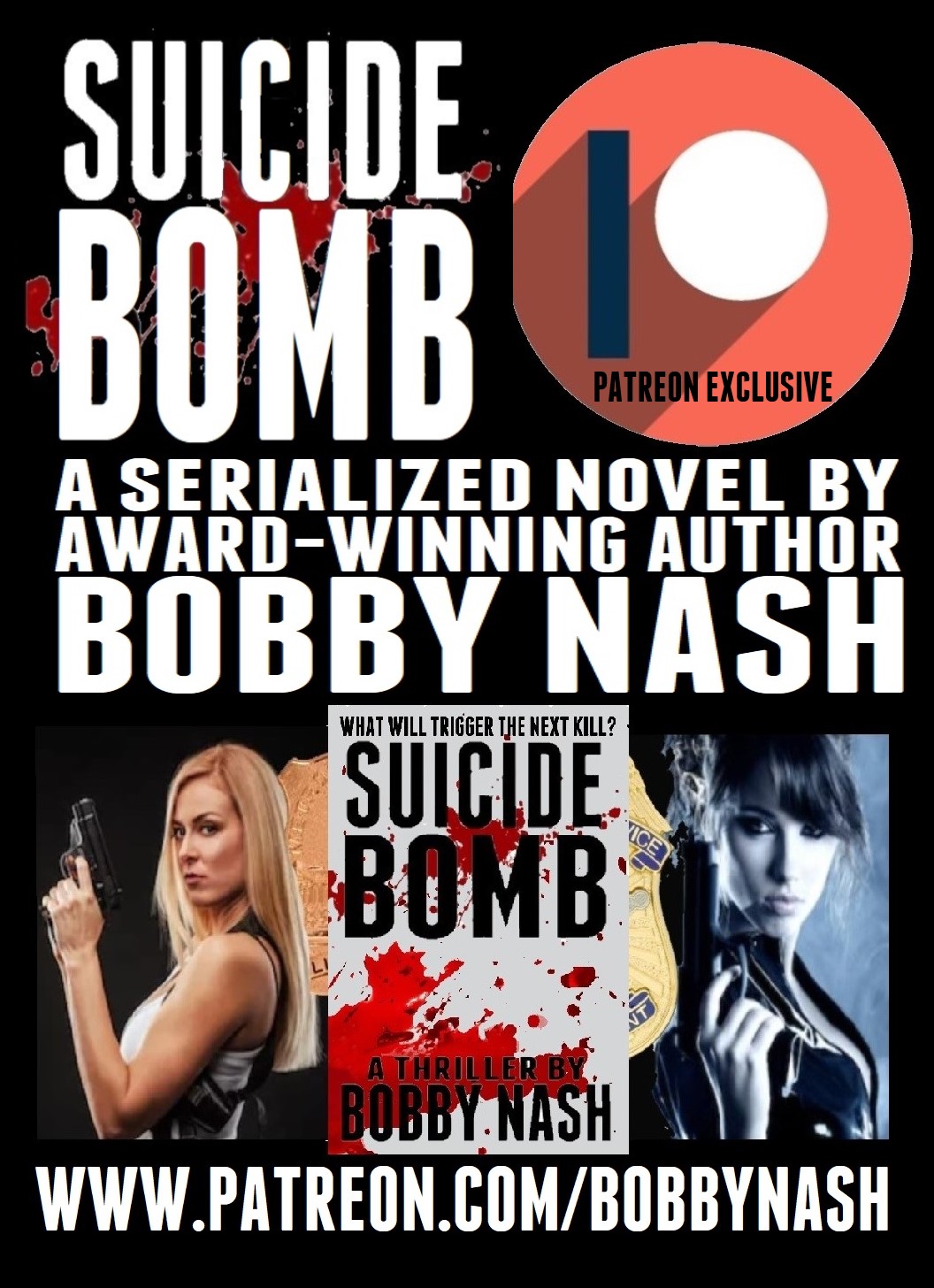 This week, Patrons received 2 times the Suicide Bomb as chapter 6 and 7 of the serialized novel were released at www.patreon.com/bobbynash.