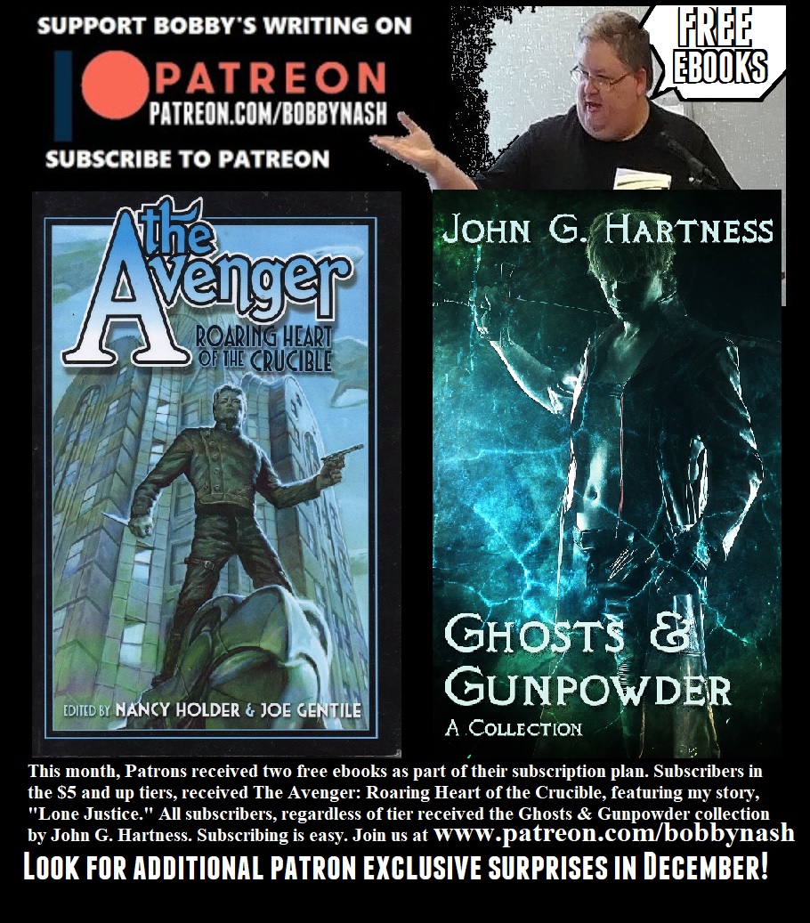You can also get monthly ebooks delivered to you with a $5 or higher monthly Patreon subscription that helps keep this writing train rolling. www.patreon.com/bobbynash The support of patrons like yourself is invaluable. I couldn't keep doing this without you!