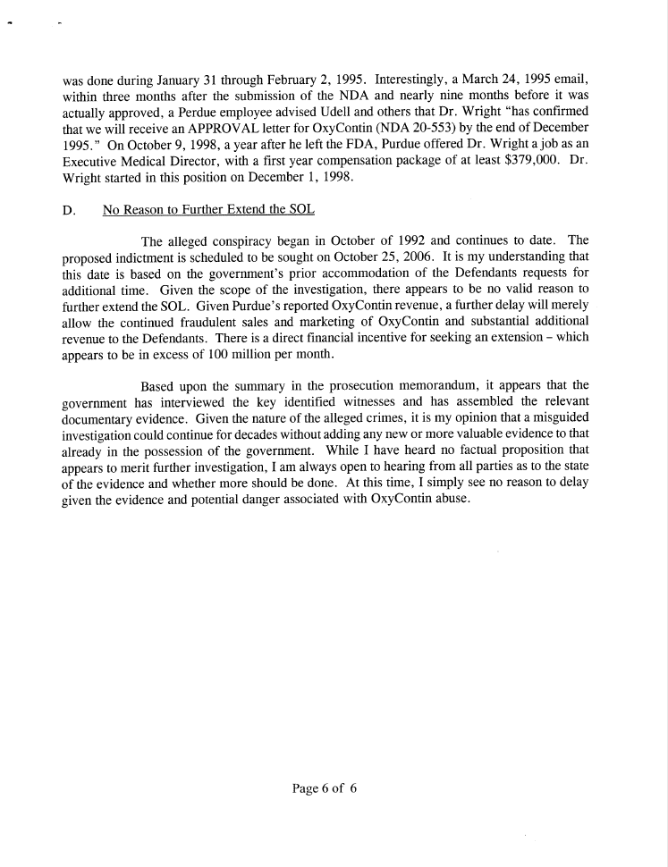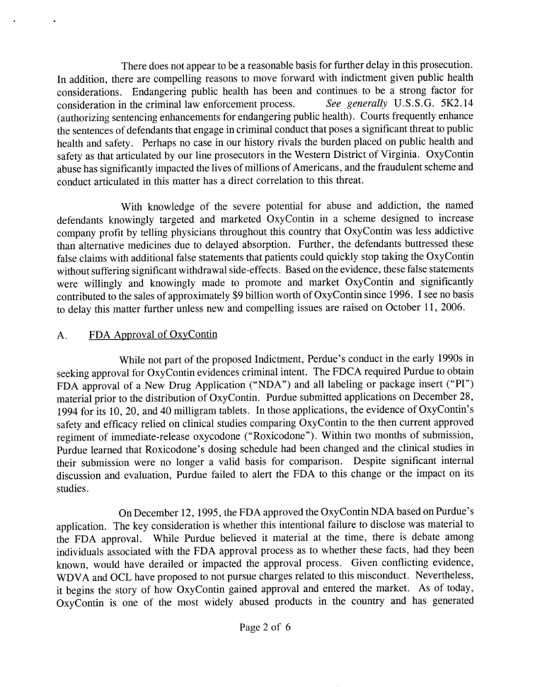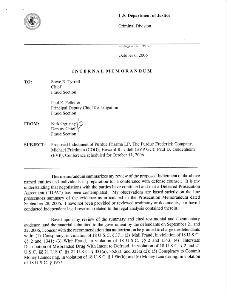 JUST UNSEALED: 2006 Dept of Justice memo that recommended CRIMINAL charges against PURDUE PHARMA
