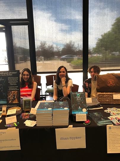 Above right: sitting at the event with my daughter and son, who helped me man the table! Mia has been my co-conspirator with marketing and sales as well as my in-house (literally) proofreader and editor, and Tom is not only the book’s cover illustrator but also artist and illustrator for the merch and additional story illustrations!