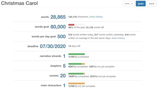 Has a wonderful overview where you can see where you currently are at as far as your goals are, how many words you have written and how many you need to write per day to reach that goal at the date set out.