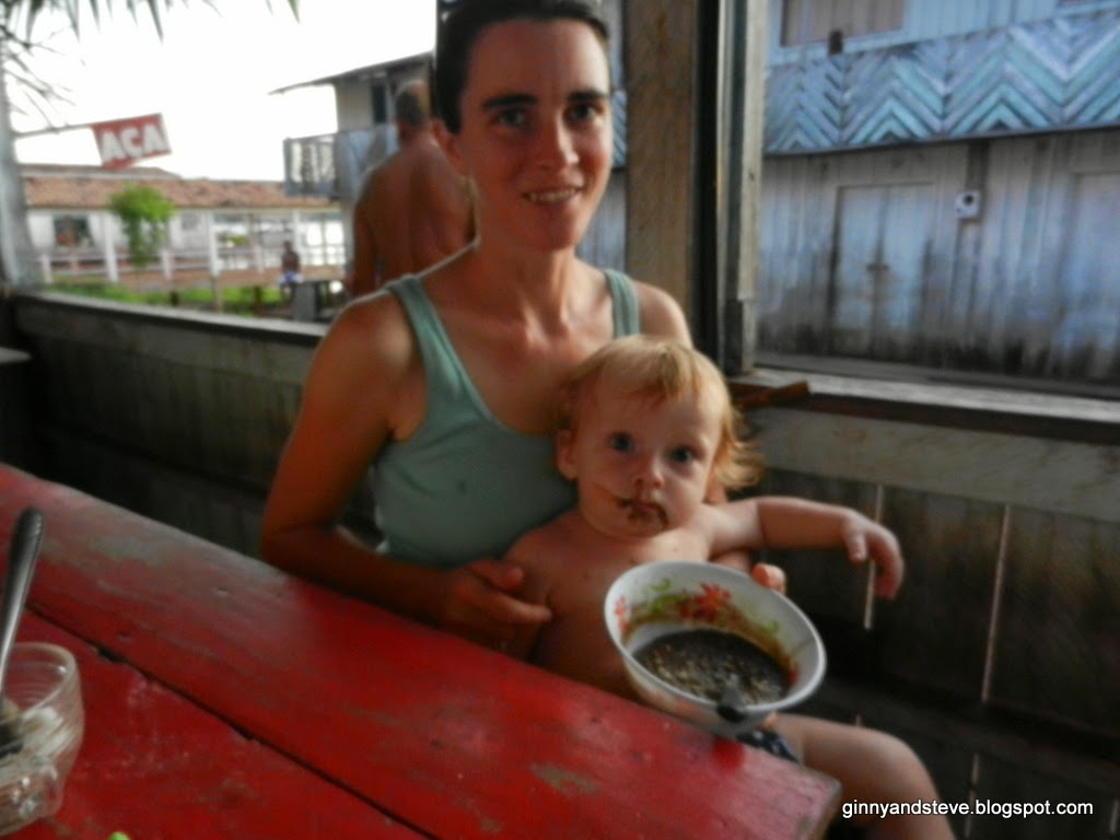Now that George crawls and getsinto everything the boat seems smaller than ever. One of us must constantlymonitor him. To ease our stay here Heltor and Mari, who run the local ice creamfactory Sorvetes Heytto, have installed us in a spare room inside their walled compounddowntown. When the motor is fixed we will begin our descent of the Rio Araguaiato the city of Belem at the mouth at the Amazon. This will take months, so vastare the distances.