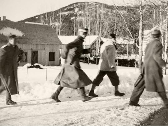 Crown Prince Olav (to rear) and King Haakon literally run for their lives at Nybergsund 11 April 1940An early visitor to Sälen was the Storting President Carl Joachim Hambro, who was en route to Stockholm. He recalls in his memoirs arriving in time for breakfast and apologising to the Crown Princess for ‘being so unkempt and not having had time to shave.’ Märtha, clearly having maintained her sense of humour merely laughed and replied, ‘Me neither.’ He brought with him a letter written by King Haakon at Nybergsund addressed to his sister (and Märtha’s mother) Princess Ingeborg. The latter arrived at the winter resort a few days later, visibly tired and looking somewhat older, according to Ragni Østgaard. Yet, Ingeborg was also ‘filled with a glowing hatred of the Germans’ for her homeland of Denmark had also recently been occupied. Märtha’s mother was also deeply concerned for the welfare of her brother, King Haakon (formerly Prince Carl of Denmark until his accession to the throne of Norway in 1905) and her son-in-law (and nephew) Olav.
