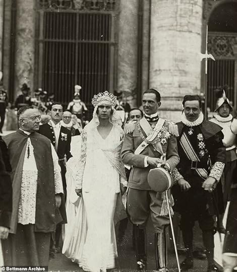 Le prince et la princesse de Piémont le jour de leur mariageCependant, un déménagement à Naples, en novembre 1931 (où Umberto avait été nommé Commandant de la 25e Infanterie), devait s’avérer fortuit. Le couple pouvait échapper aux confins du Palais Royal de la ville pour des week-ends de détente à la Villa Rosebery dans la banlieue balnéaire de Posillipo. Marie-José se sentait également plus émancipée parmi les Napolitains heureux et détendus : elle jouait au tennis trois fois par semaine à la Villa Communale et avait établi un Réfectoire Public pour nourrir les pauvres de la ville. Épanouie et amoureuse, elle décrivit plus tard cette époque comme ‘les meilleures années de notre mariage.’ L’apogée de sa joie fut la naissance d’une fille bien-aimée, Maria Pia, le 24 septembre 1934.