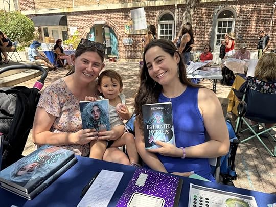 Behind the BoothThis year, I went all in on making my space cozy and creative—complete with signed copies of In The Dark and His Haunted Footsteps, some fun bookish merch, and a layout that let people linger. Nothing beats the moment someone picks up your book, reads the back cover, and says, “Okay… I need this.”