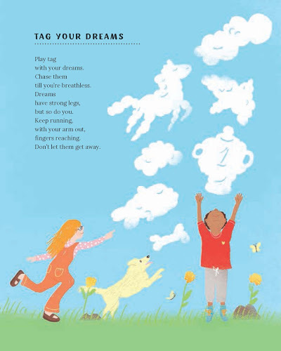Tag Your Dreams: Poems of Play and Persistence celebrates being active, reaching goals, and learning limits. The poems employ figurative language devices such as alliteration, simile, metaphor, repetition, personification, and onomatopoeia. Each poem tells a story about a young person discovering skills, strengths, and dreams through activity. Team sports are included along with playground games, biking, sledding, swimming, hiking, and simply twirling in the rain. To help teachers use Tag YourDreams as a classroom resource, I have developed a teacher's guide with questions to discuss, ways to examine the poetry, and writing prompts.