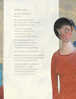 Seven-year-old Henry waits for his mother. Almost all theother children have been picked up early from elementary school. He’s confusedand aware that the adults around him have been crying. Henry says, “Grown-upstalk to each other, but not to kids.”