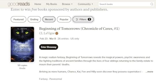 Visit Goodreads HERE and enter my giveaway...it's easy and it's free!