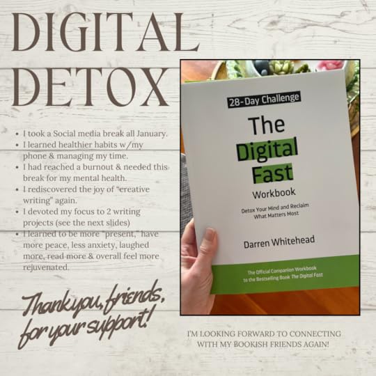 Last month, I participated in a Digital Detox/Fast with my church. After the busyness of marketing, writing, editing, and promoting books all year long in 2024, I desperately needed time to reset and recover. This 28-day challenge was exactly what I needed. I developed some great habits to help me stay focused while writing too. (see the above slide for a list of my takeaways from the digital break.)