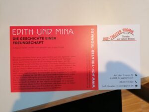 After my mother fled the country as a 12-year-old unaccompanied minor, Mina, then a 25-year-old Christian girl, became a voice of resistance. She recorded Nazi crimes on scraps of paper and placed her notes in a suitcase that Jürgen found after her death in 1992. Mina had kept the notes as evidence in the Nazi trials.Mina is the subject of my next book, “I Will Not Howl with Those Wolves.”Jürgen continues to perform his play, “Edith Und Mina” throughout Germany today. My friend, Fritz Wolf, attended this performance, organized by The Round Table of Jewish Life in Groß-Umstadt, and shared these photos with me.The post “Edith und Mina,” the play appeared first on Fern Schumer Chapman.