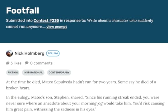 Inspirational fiction isn’t exactly my MO, as many of you know. But in taking a week off to write this story last week, I found some much-needed solace from the difficult topics in my current long work-in-progress. Take a quick read, give it a thumbs up on the Reedsy page, and leave a comment. Thanks for reading.