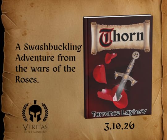 It’s exciting to be able to share the cover of my next book! Thorn from Veritas Entertainment, 3/10/26.