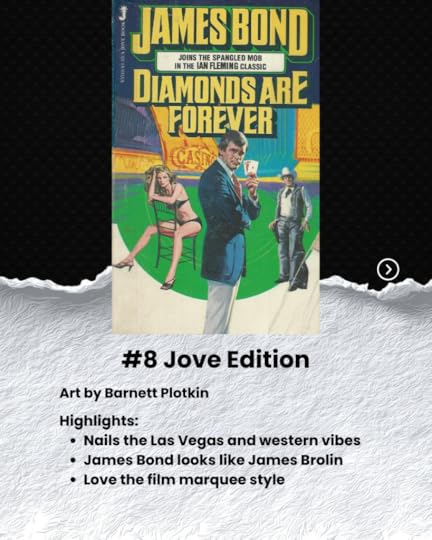 This is boring. The entire run of these Berkly Paperbacks are bland silhouette of James Bond with a gun. Nothing highlighting the unique qualities or settings of Diamonds are Forever. It is generic in every way.