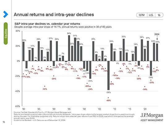 But know this: it won’t be a smooth ride. Over those 45 years, the market had an intra-year average decline of 14.1%. This means that even in the 34 calendar years with positive returns, significant declines occurred at some point during the year.