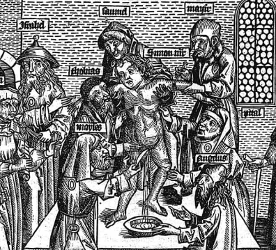 Marie said nothing, but analyzed him quickly as she would one of her clients. He had a thick accent from a land she didn’t recognize, but that wasn’t important. What was important was that he was rich, and a noble. Sumptuary laws forbade common folk from wearing the fabrics he wore, though in the privacy of a brothel many girls had something special not meant for their class to wear for clients, such as a proper girdle. Not only was he permitted by law to wear velvets and silks in public, but he had the means by which to afford jewels and gold, as evidenced by a star ruby set in gold on his finger and the strangely designed golden torq necklace with the heads of hounds on the ends of it. His clothes were clean, and so were his shoes at a quick glance. She doubted he had ever worked a day in his life. She noted a dagger at his belt with a hilt shaped in the head of a hound or wolf similar to his necklace and wondered if he’d ever even used the thing. It looked decorative. Good for slicing cheese and apples, less so for slicing necks.