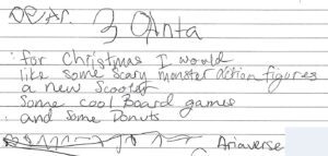 ~ Letters to Santa are often dropped in the US postal service mailboxes. The “Operation Santa” program invites people to adopt and respond to the adorable wishes of thousands of children each year. You can make a wish come true here: https://www.uspsoperationsanta.com/letters