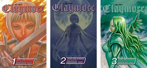 I’ve finished all the published Berserk volumes (except for the last one that came out) and decided to start another manga. This time, I picked up Claymore, which is about a group of half-human, half-demon warriors who hunt demons. They are all women, as men don’t seem to survive the process that transforms them into the killing machines that they are. I read three volumes, and I’m really enjoying it.