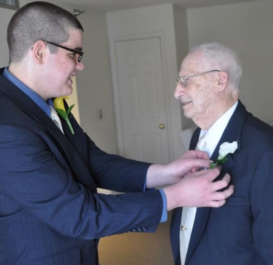 Many times at a wedding you will see strollers lined up outside of the sanctuary. At mom's second wedding the hallway was lined with walkers! Elm Terrace Gardens grab onto this wonderful and uplifting story and went all out to make their wedding day something special and special it was. Ben was asked to be the ring bearer and at 6' 3" I'm pretty confident that he is the tallest in history!