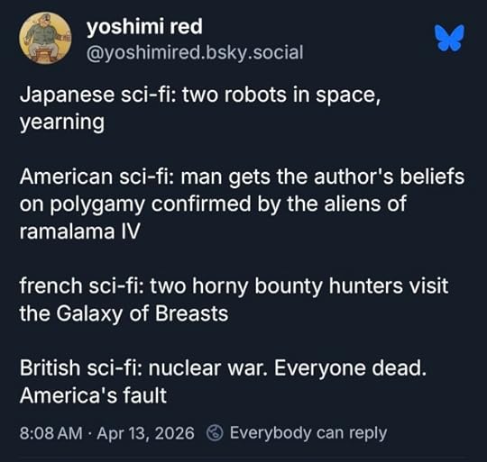 Good books are good, bad books and even problematic ones can help inform what I’m working on. The actual project I’m working on is an adaptation so pitfalls are as helpful to me as peaks.