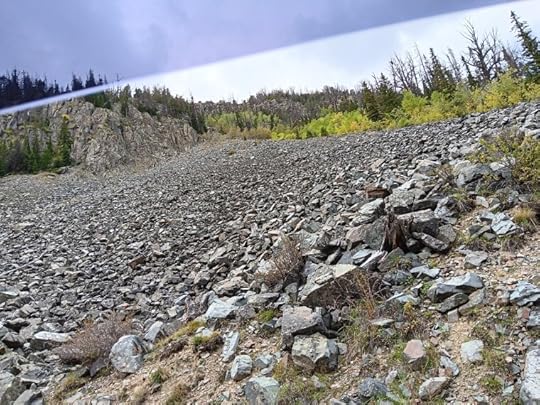 This view through my window will show you how close to the mountainside we were and how many rocks there were. These rocks we were driving across made the drive so very bumpy.