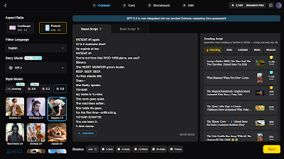 I copy and paste my script into the smart script box, select the duration of the film at the bottom, and click next.